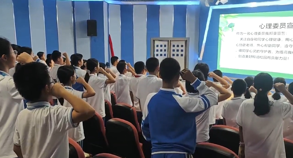 最后,她组织全部心理委员进行庄严宣誓,举行正式聘任仪式。在聘任仪式上,全体心理委员郑重宣誓:“用心学习、热心助人、遵守保密原则,做同学心灵的守护者!”这一光荣宣誓,标志着新一届初一心理委员团队正式履职。