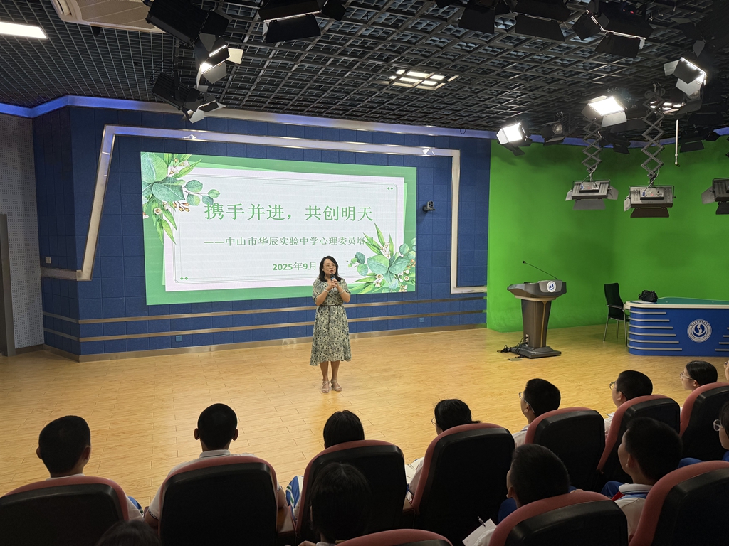 2025年9月25日,中山市华辰实验中学成功举办初一年级心理委员专题培训及聘任仪式。本次培训以“携手并进,共创明天”为主题,旨在提升心理委员的专业素养与服务能力,为校园心理健康教育工作注入新生力量。本次培训的主讲人是校心理辅导中心负责人强薇老师。