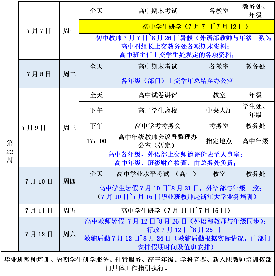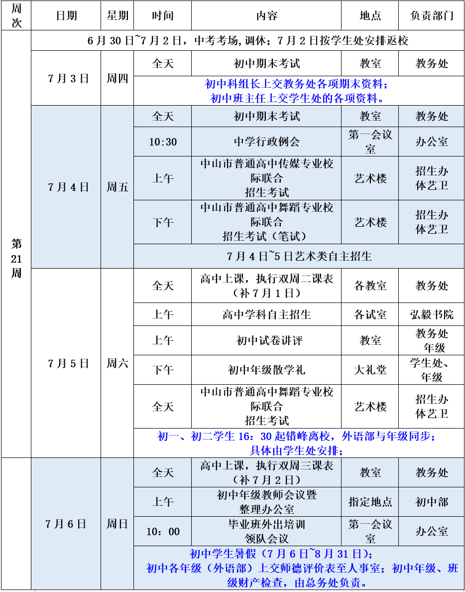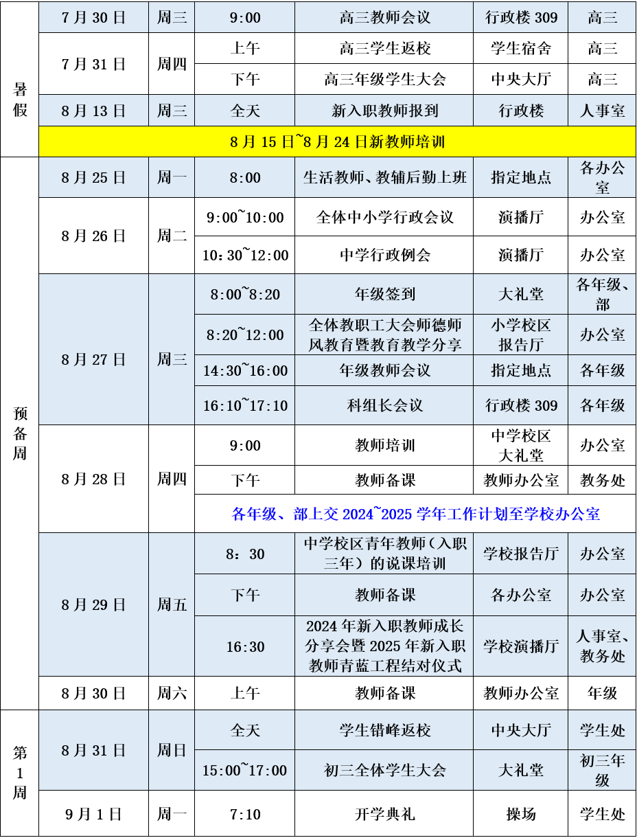 第二学期期末(2024~2025学期第20_21周)暨新学期预备周工作安排