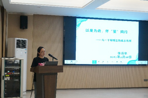 随后,李月华老师围绕 “以爱为舟,伴星同行 —— 与一个特殊生的成长历程” 展开分享,聚焦特殊孩子的教育故事。她从 “联结家庭,共筑爱的防护盾”“接受差异,尊重成长小节奏”“助力融入,帮孩子找到‘小伙伴’” 三个维度,讲述如何用耐心与专业陪伴特殊学生成长,并强调要 “带着为他人撑伞的初心,接纳每个孩子的不同,陪他们找到自己的轨迹”,其经验分享兼具实用性与感染力。