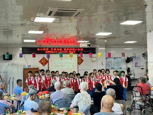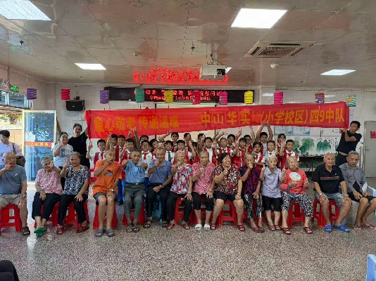 9月30日,中山华实小学校区四 9 中队组织学生与亲子志愿者,走进港口敬老院开展 “童心敬老,传递温暖” 活动。