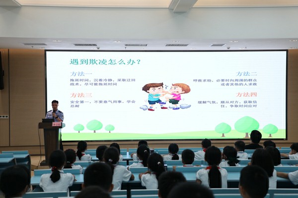 李卫民警官作为学校法治副校长,他始终关注青少年法治教育,用专业与热忱为校园平安注入力量。讲座中,李警官结合小学生特点,以案释法,用真实案例深入浅出地讲解了校园常见违纪违法行为的后果,并传授防范妙招:“勿以恶小而为之,打架斗殴、破坏公物等行为都可能触碰法律红线。”同时针对即将到来的暑假,他特别提醒同学们注意出行安全,防范溺水、诈骗等风险。