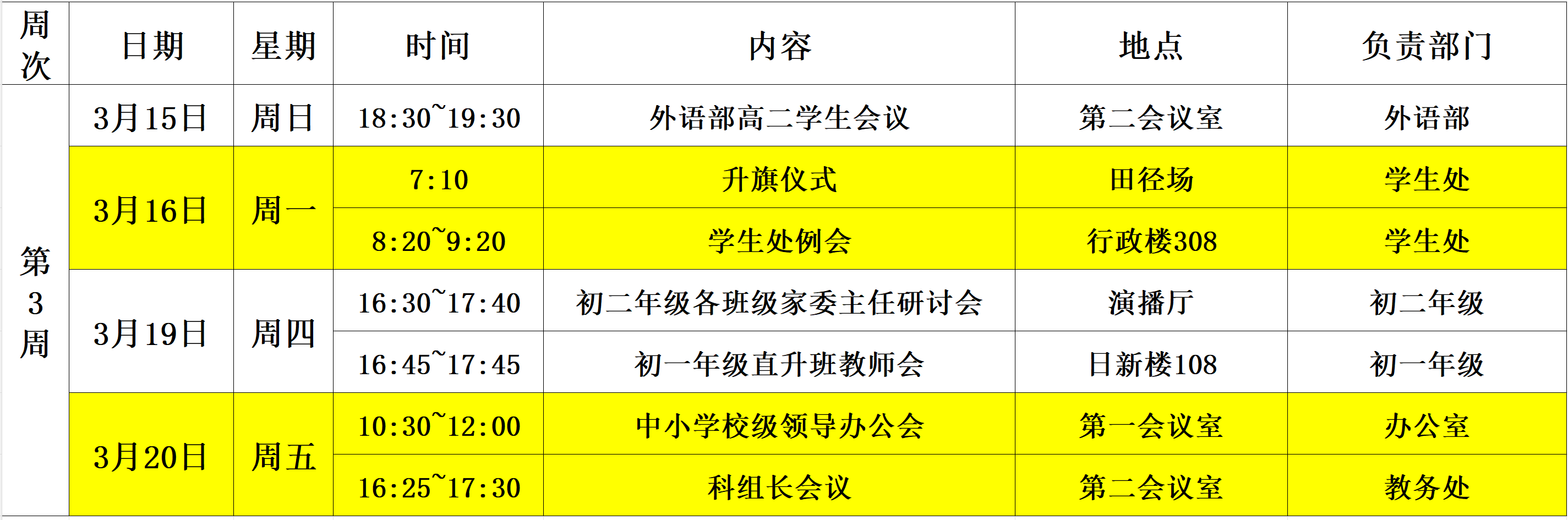 第3周中学校区工作安排(3月15日~3月21日)