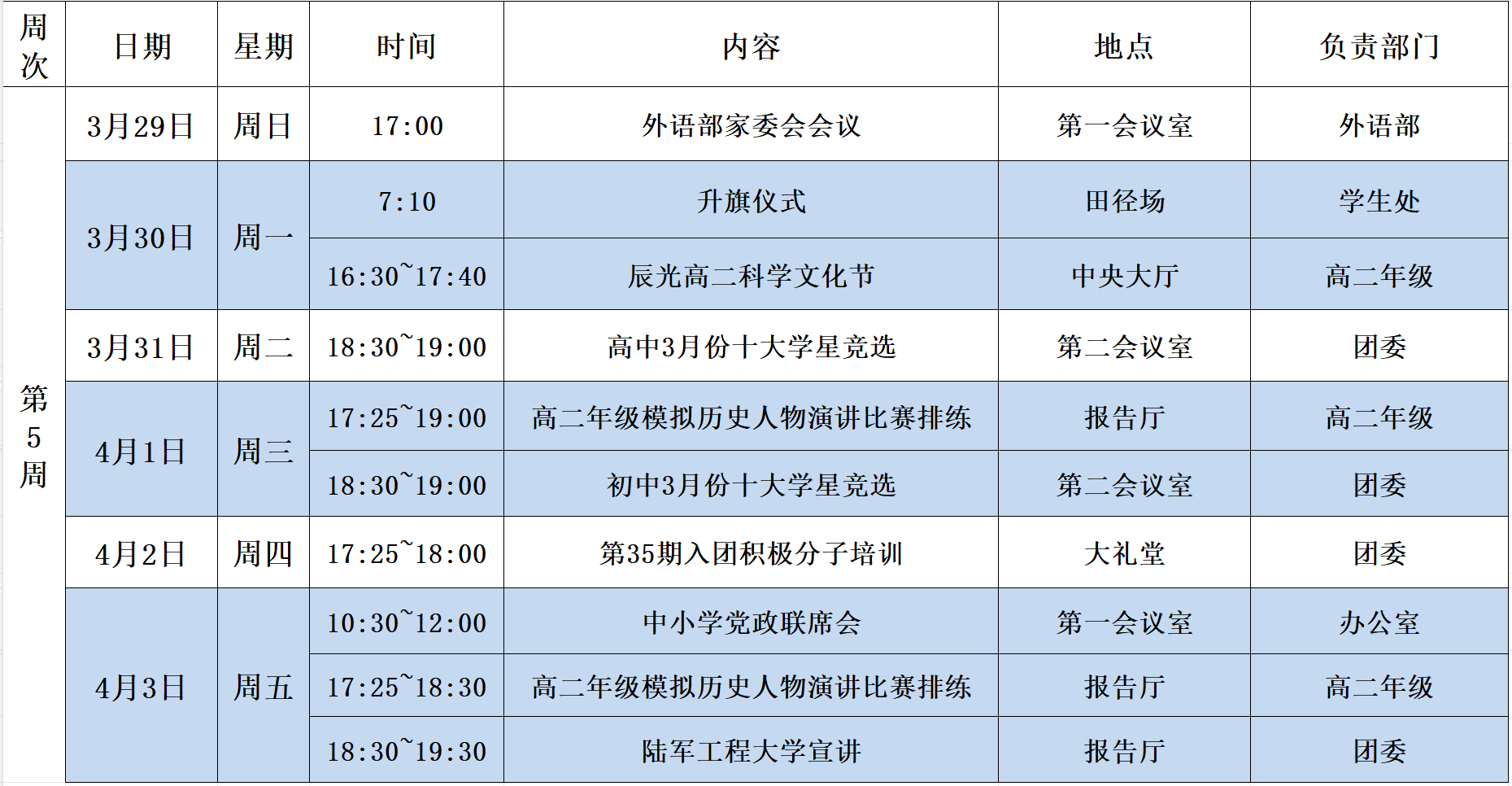 第5周工作安排(3月29日~4月4日)