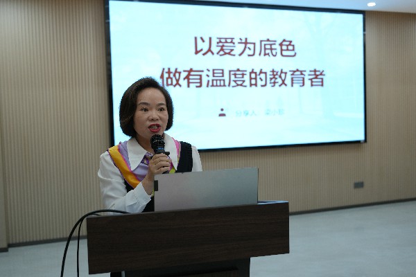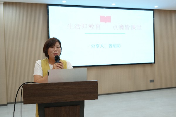 曾昭彩老师分享了自己的教育理念与实践心得。她重点分享了如何细致捕捉孩子们的生活点滴与情绪变化,具体介绍了从睡前的暖心陪伴、日常的生活照料,到孩子们困惑时的耐心疏导等实操方法,希望能为孩子们搭建起温暖的依靠,也为在场老师们做好学生日常看护、情绪疏导提供了可借鉴的经验。