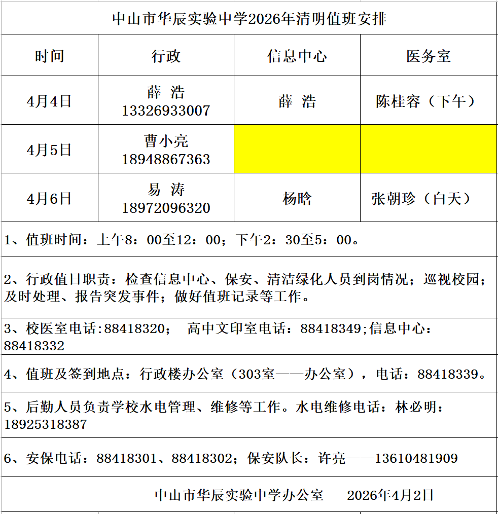 2026年清明值班安排
