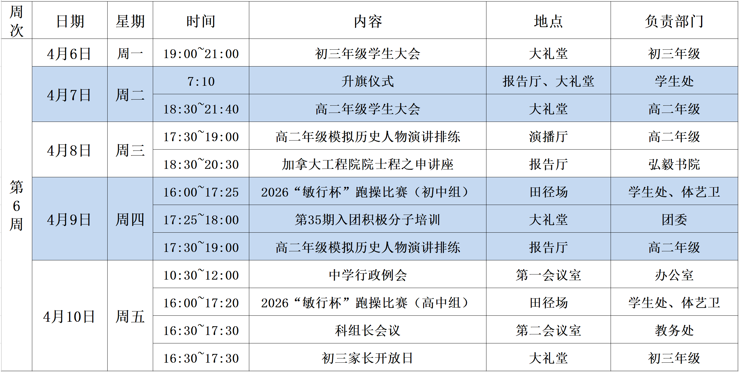 第6周工作安排(4月5日~4月11日)