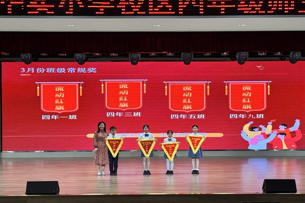 表彰环节,大会对开学一月以来表现优异的个人与集体集中嘉奖。刘伟华老师为语文 “现代诗歌撷珍” 优秀作品获奖者点评颁奖;刘华山、户保锋老师为数学阶段性知识梳理优秀代表颁奖;周欣霖老师为 “小小演讲家” 乔一落、陈语馨颁奖。随后颁发“学习标兵”最佳风采奖、三月常规优秀、运动会团体总分前六名的班级颁奖。每一份荣誉,都是对少年努力的最好见证。