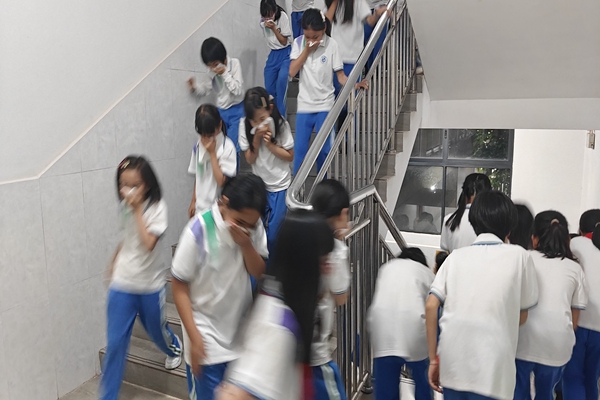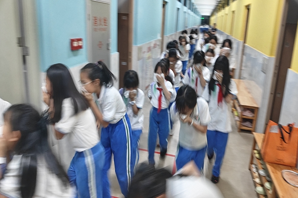 图一图二:同学们按照指定路线疏散