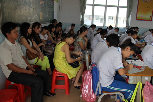 这次“家校开放日”主要内容分三个部分,首先是家长们走进课堂,跟着孩子一同上课,和孩子一起感受课堂教学。接着由班主任组织家长,结合本学期的第一次月考,和各课任老师一起座谈交流。最后参加开放日的全体家长,观看了初三语文科组筹备的“经典诗文”朗诵比赛。